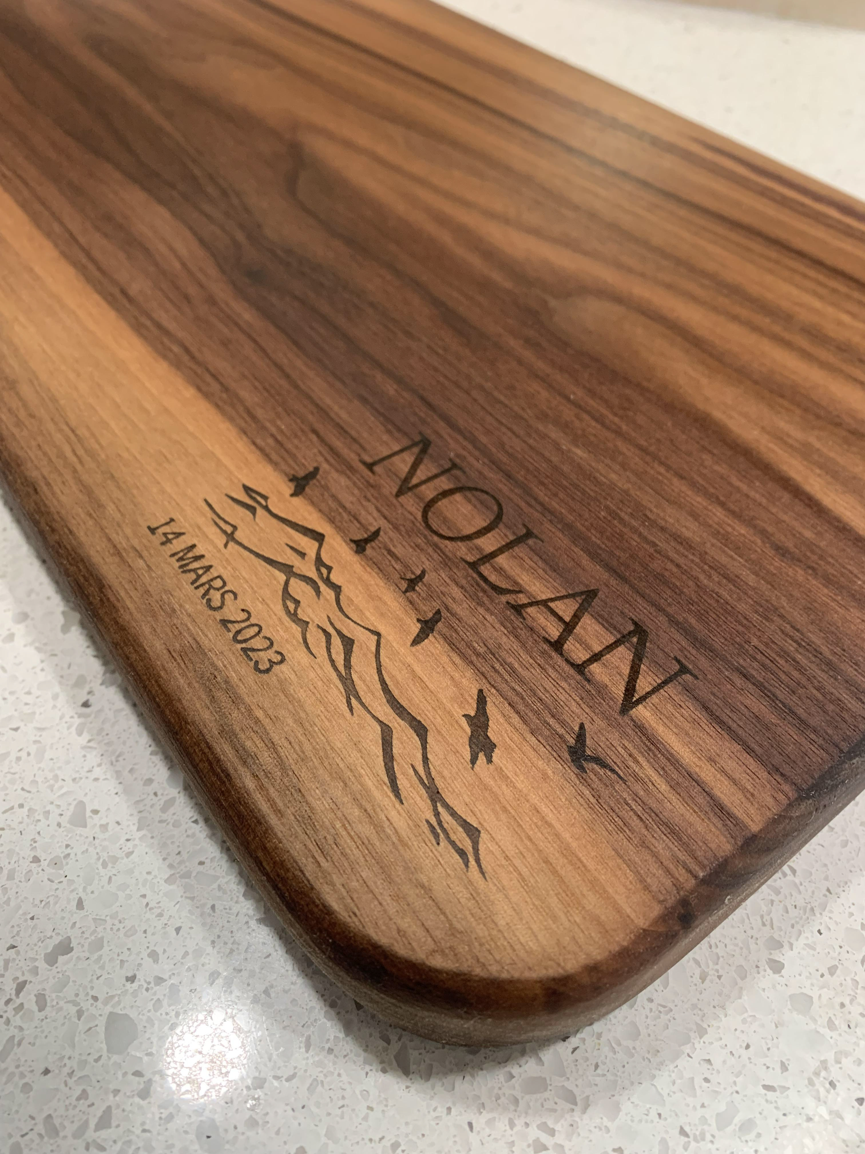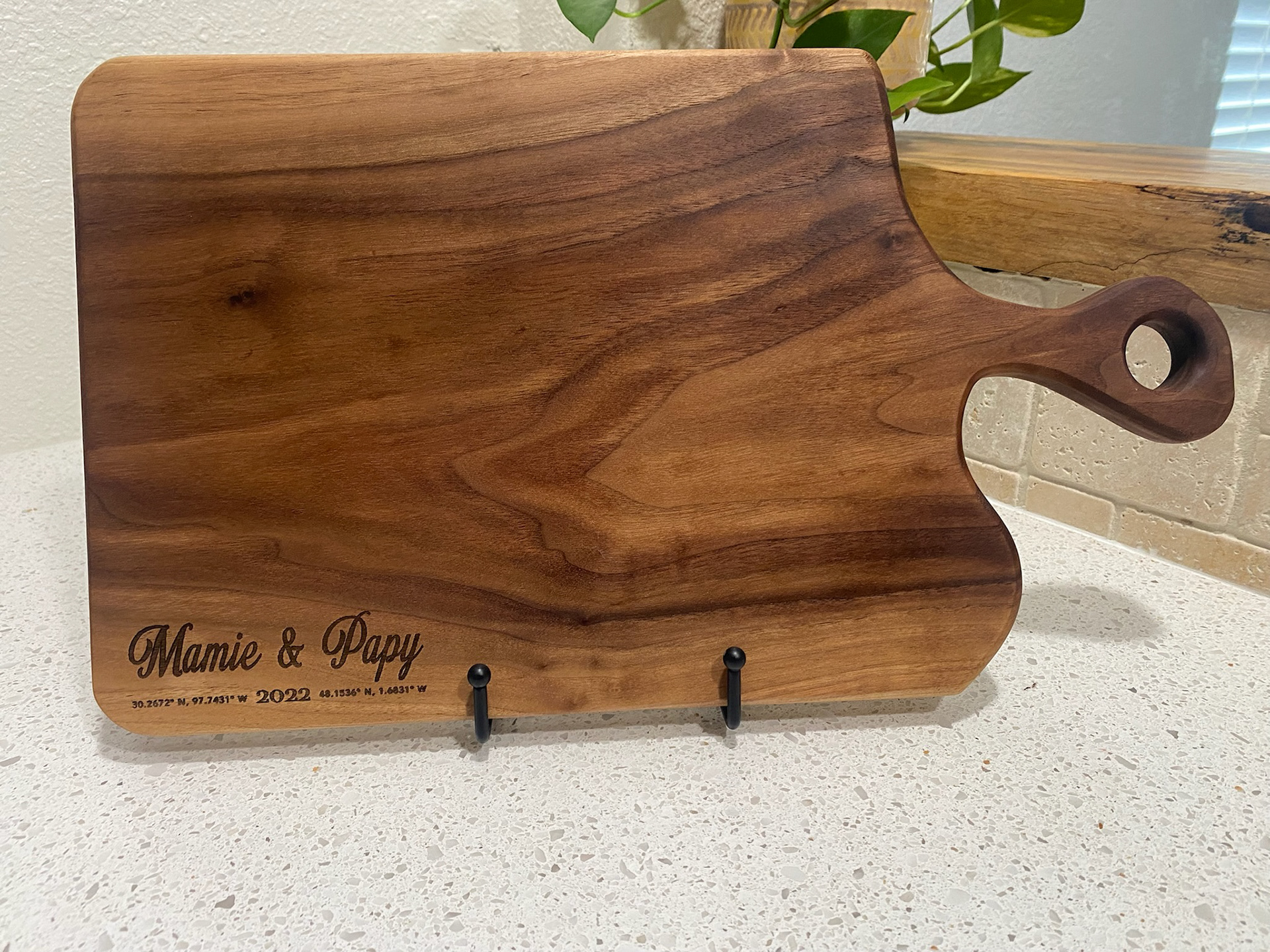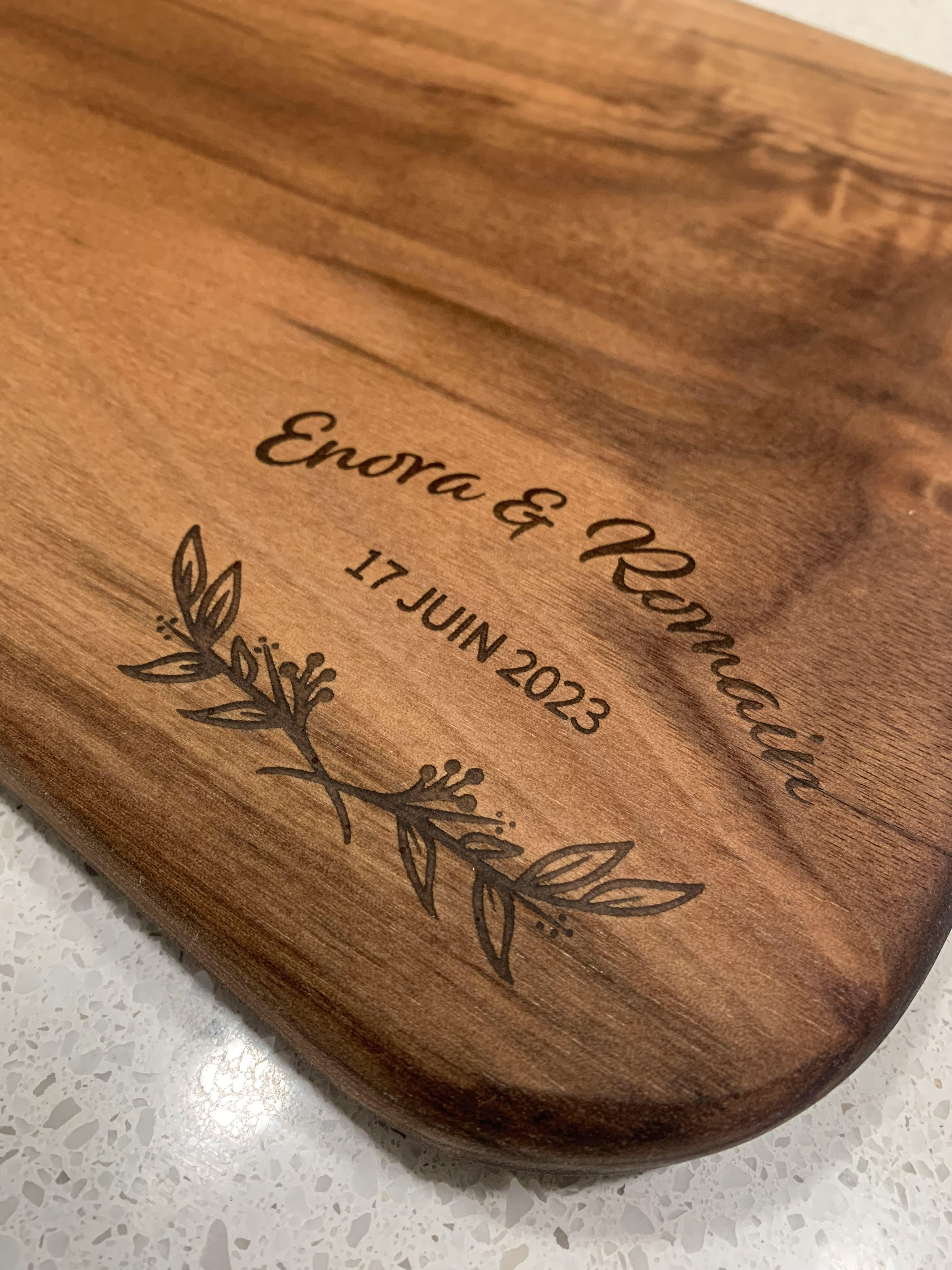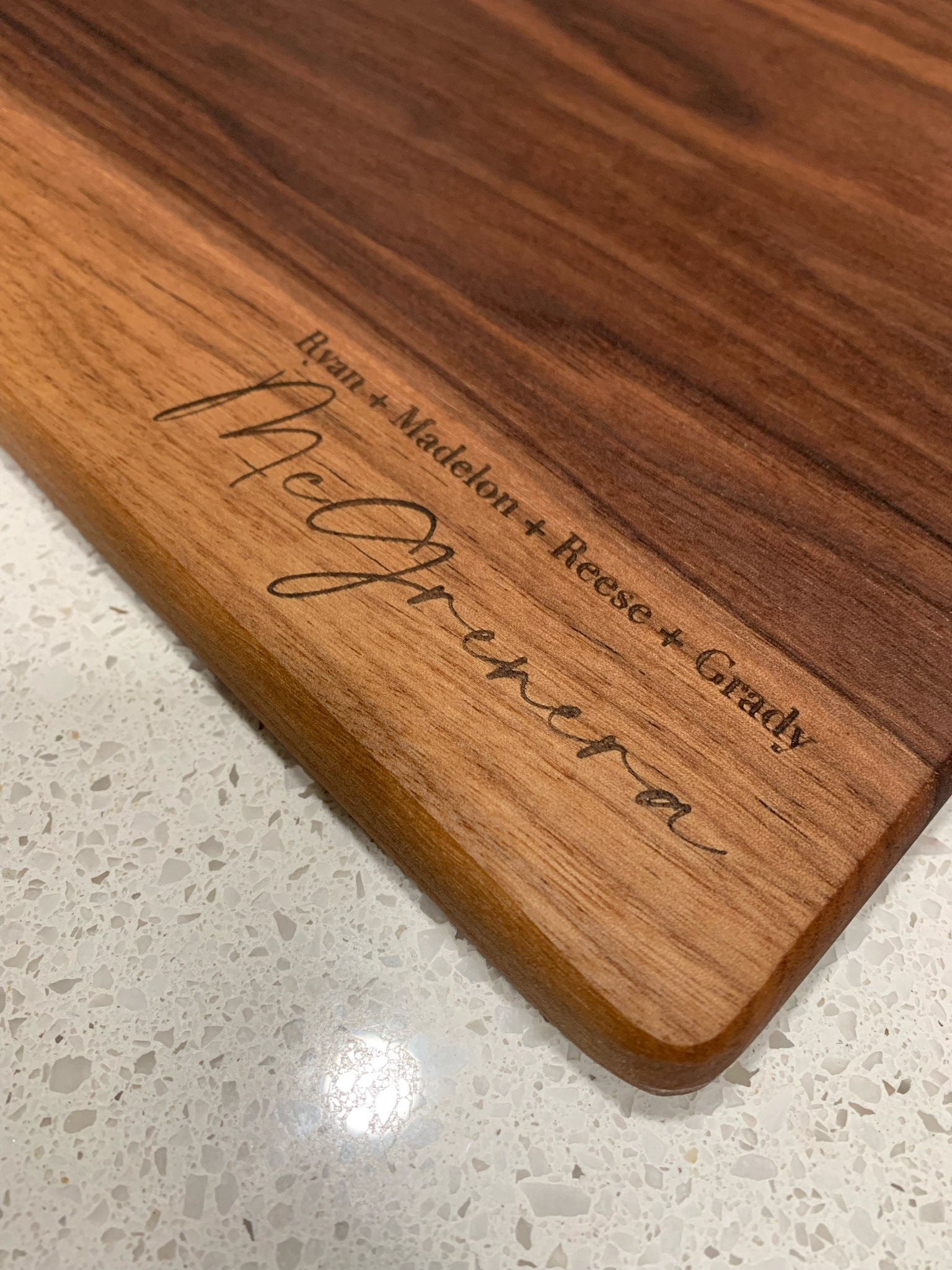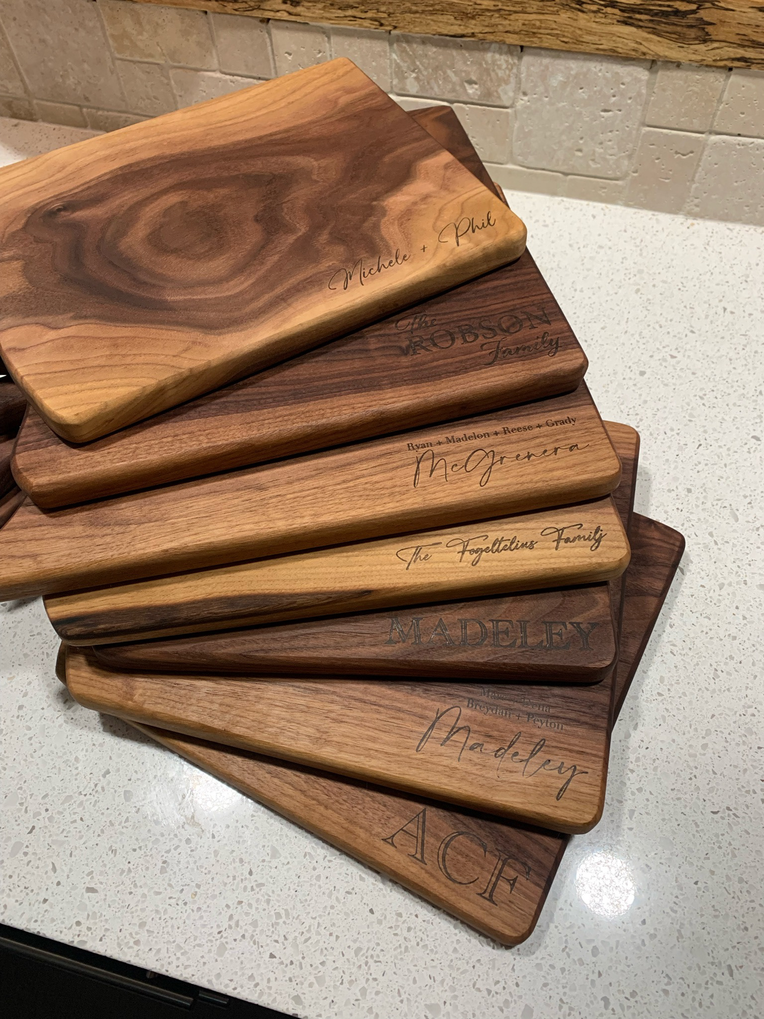 As a designer, I’m always exploring how digital craft can live beyond the screen. Collaborating with my husband, a woodworker, I’ve brought that vision to charcuterie boards — combining handcrafted materials with laser-engraved design. Each board becomes a canvas for typography, layout, and custom illustration, allowing for meaningful, personalized pieces that blend form and function.